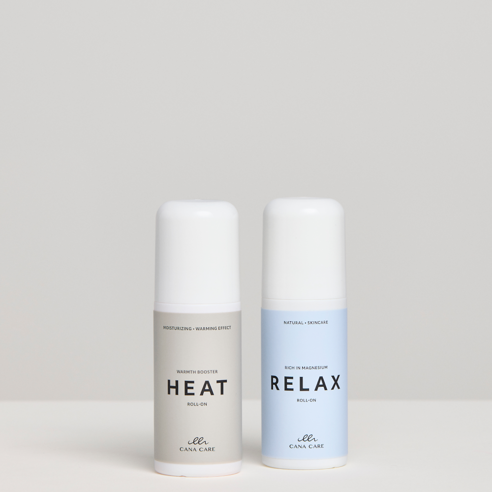 Detta paket är skräddarsytt för dig som upplever att kroppen spänner upp sig då och då, eller kanske varje dag. Det kan vara i nacken, ryggen eller som början på spänningshuvudvärk. HEAT ger omedelbar värmande lindring och löser upp spänningar, medan RELAX roll-on hjälper kroppen att hitta ro genom att tillföra magnesium lokalt där det behövs. Tillsammans hjälper RELAX och HEAT kroppen att släppa på spänningar. Om du känner dig spänd, applicera först RELAX för en magnesiumboost och därefter HEAT, så att den värmande effekten kan hjälpa dig att slappna av.